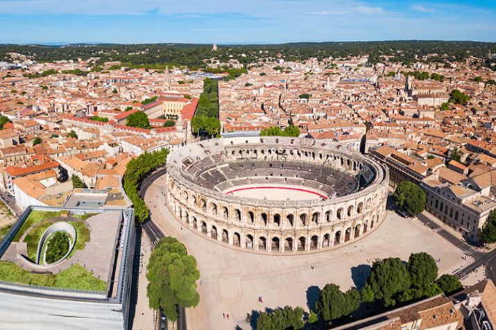 Nimes Arena also known as Nimes Amphitheatre, is amongst the best preserved Roman amphitheatres in the world. Built during the reign of the Emperor Augustus in the first century AD, the arena is a marvel of Roman engineering. A vast oval with a stunning façade resplendent with archways and ornamentation, Nimes Arena could seat up to 24,000 people in its 34 terraces.