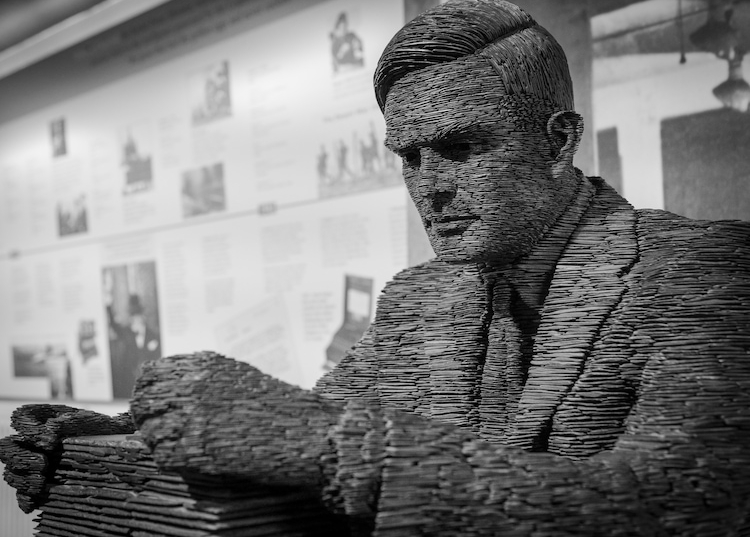 Bletchley Park is a country estate fifty miles north of London. In 1938 it was converted from a residential house into a British intelligence centre. It was there that the Government Code and Cypher School, aided by Alan Turing, deciphered the ‘Enigma’, the highly effective code encryption machines used by the Nazis.