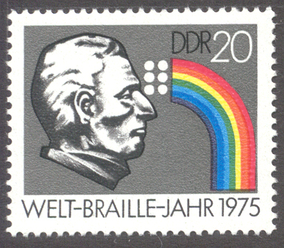 This postage stamp commemorating Braille was created in 1975 in East Germany.