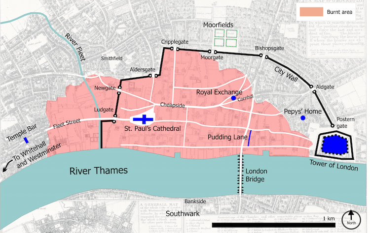 By the time the last flames were extinguished the fire had laid waste to much of London. Around 13,200 houses had been destroyed and an estimated 100,000 Londoners made homeless.