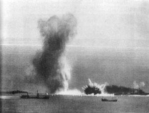 A British convoy under attack by German dive bombers, 14 July 1940 (Credit: Public Domain).