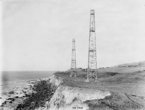 Royal Air Force Radar, 1939-1945 Chain Home: radar receiver towers and bunkers at Woody Bay near St Lawrence, Isle of Wight, England. This installation was a ‘Remote Reserve’ station to Ventnor CH (Credit: Public Domain).