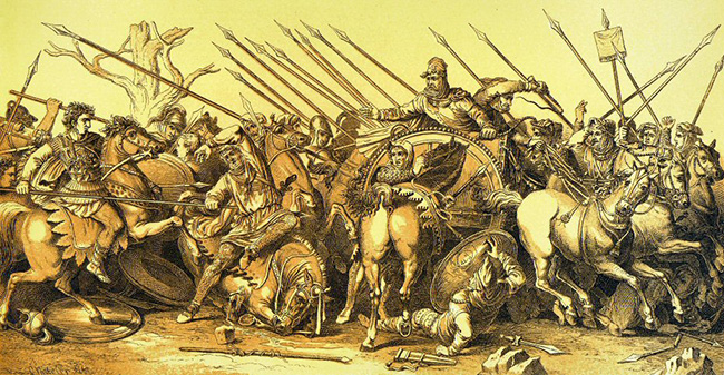 A Roman fresco from Pompeii showing Darius fleeing from Alexander during the Battle of Issus.