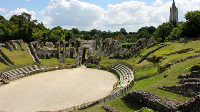 The Arch of Germanicus stands in the small city of Saintes, which is located in the department of Charente-Maritime of the french region Poitou-Charentes. The city is roughly 120km (1hr 30min drive) north of Bordeaux and 80km (1hr drive) south of La Rochelle on the western coast of France. The address of the Arch is Place Bassompierre, 17100 Saintes.