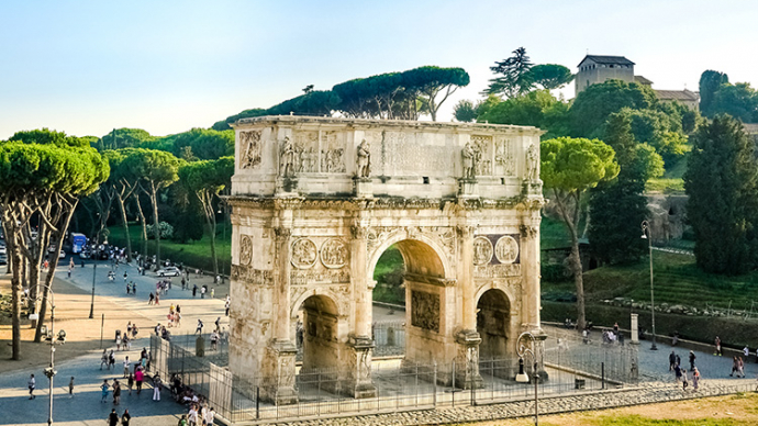 Located in the Roman Forum, the Arch of Septimius Severus commemorates the short war between Rome and the Parthian Empire, fought by the Emperor between 194-199AD. The brief conflict resulted in victory for Severus, who sacked the Parthian capital and reclaimed territory in the East.