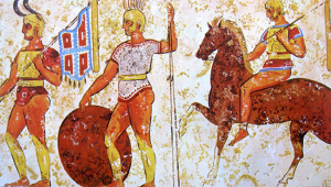 The neighbourhood of Monte Bursaccio which was overcome by the eruption of Vesuvius in 79 AD that obliterated and preserved its better-known neighbours, Pompeii and Herculaneum, is famous for the frescoes of its aristocratic villas, excavated before World War I. A hoard of Roman silver and coins that had been hurriedly stashed in a cistern for protection at the time of the eruption was also recovered in Boscoreale in 1895, and divided among several museums, including the Louvre and the British Museum.