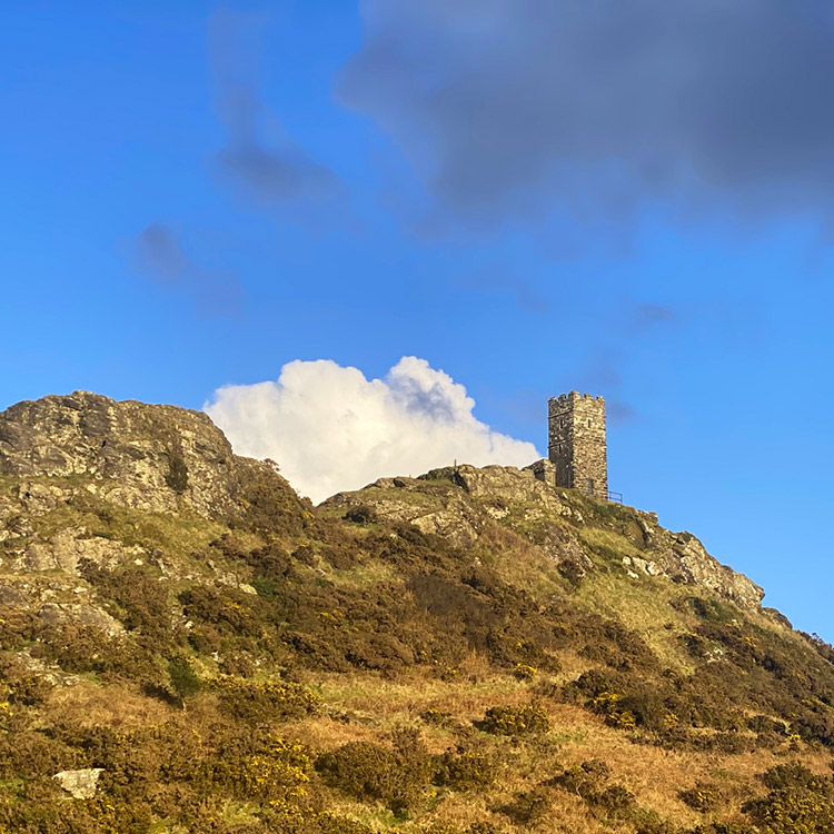 The tor is a volcanic rock formation created around 350 million years ago. Rising up 70 metres from the surrounding landscape, the tor’s natural defensive advantages were initially used as an Iron Age hillfort – from which earthworks and ramparts can be found around its base.