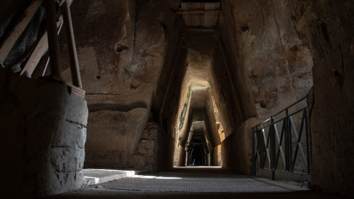 The cave was most likely a defensive structure, also serving as a Christian burial site. Whatever its original use, this atmospheric trapezoidal tunnel is fascinating.