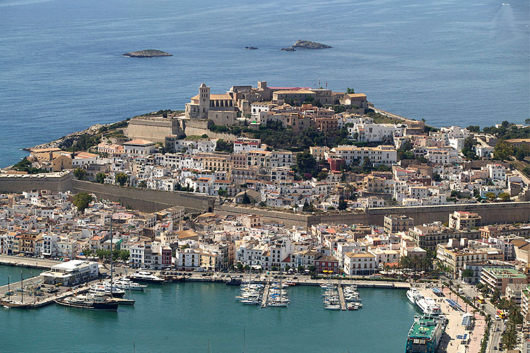 Perched on a hilltop known as Puig de Vila, Dalt Vila offers impressive views of the harbour and the neighbouring island of Formentera.