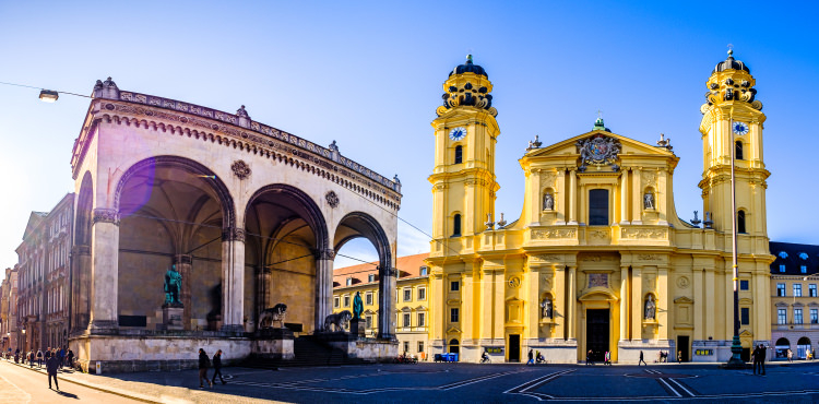 Situated opposite the beautiful Theatine Church, Feldherrnhalle is easily found on foot or via public transport. The subway services U3, U4, U5 and U6 all stop at Odeonsplatz just by the Feldherrnhalle, as well as buses 100, 153, N40, N41 and N45.