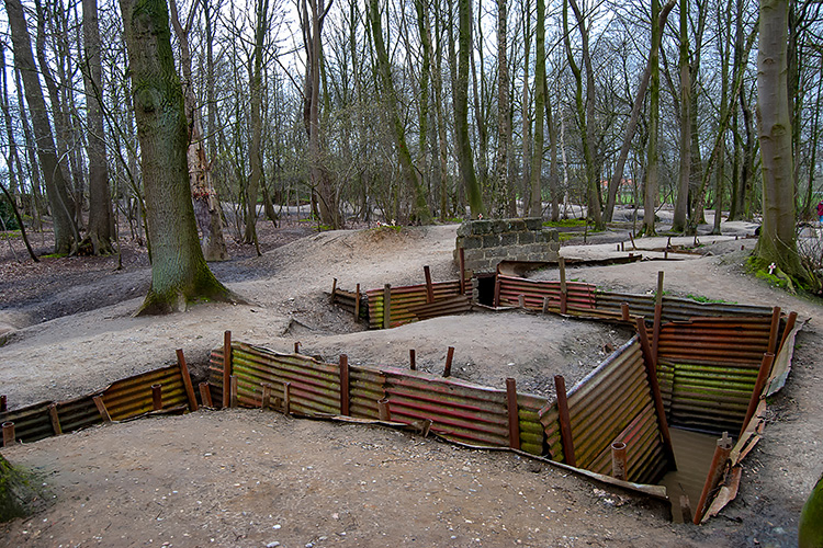 The Hill 62 Sanctuary Wood Museum near Ypres in Belgium contains an impressive partially restored British World War One trench system. Located near to the original front lines, the Sanctuary Wood Trenches were left in place by the owner of the land after the war and were preserved in-situ from that time.