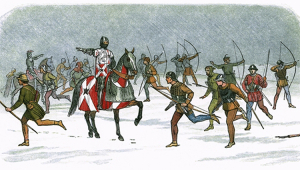 Situated roughly 35 miles (56 km) south of Florence, the town served as an important relay point for pilgrims travelling to or from Rome. San Gimignano derived its name from the Bishop of Modena who saved the settlement from a barbarian invasion in 450 AD. Following the fragmentation of the Italian peninsula during the Middle Ages, the town became an independent republic, dominated by two powerful noble families. The 14th century would see the eventual decline of San Gimigano, brought about by plagues ravaging the local population. The town would eventually find itself under the influence of Florence.