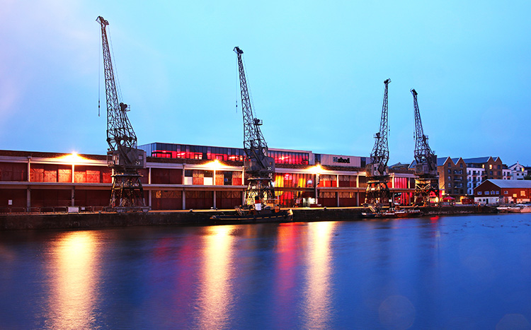 Bristol’s Wapping Wharf has long been an important part of the city’s maritime activities. Cargo sheds have lined the quayside for centuries – many of these were destroyed during the Blitz. After the war, the local authority invested in rebuilding the area, but as dockyard commerce declined during the 1950s and 60s, the huge warehouses became redundant.