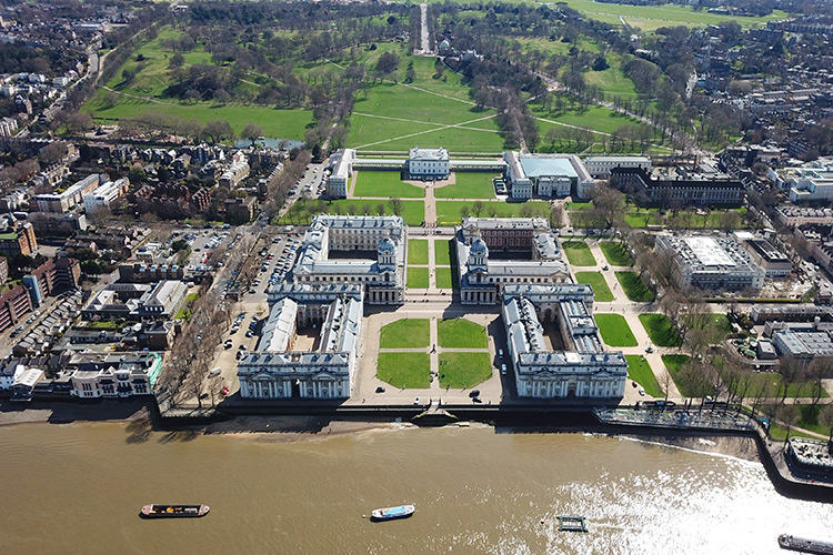 Buildings originally constructed to serve as the Royal Hospital for Seamen at Greenwich, now generally known as Greenwich Hospital (designed by Christopher Wren, and built between 1696 and 1712) became home to the Royal Naval College in 1873, dubbed one of the “finest and most dramatically sited architectural and landscape ensemble in the British Isles”. The Old Royal Naval College is open to the public, with many being captivated by the grand painted hall.