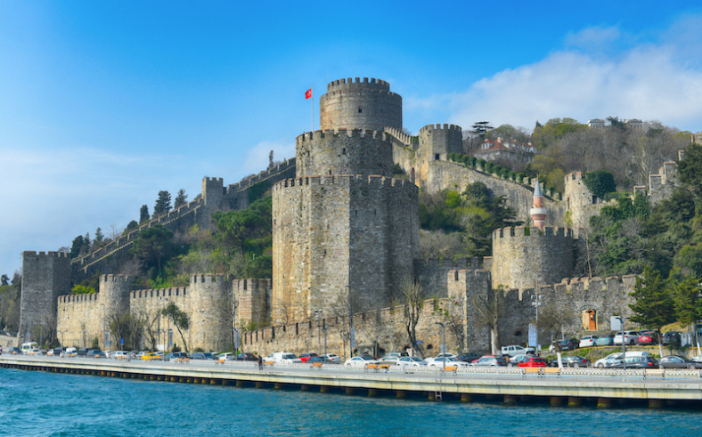 The Rumeli Fortress (Rumelihisari) in Istanbul, Turkey, was built by the Ottoman Sultan Mehmet II as he prepared to lay siege to Constantinople and conquer it from the Byzantines.