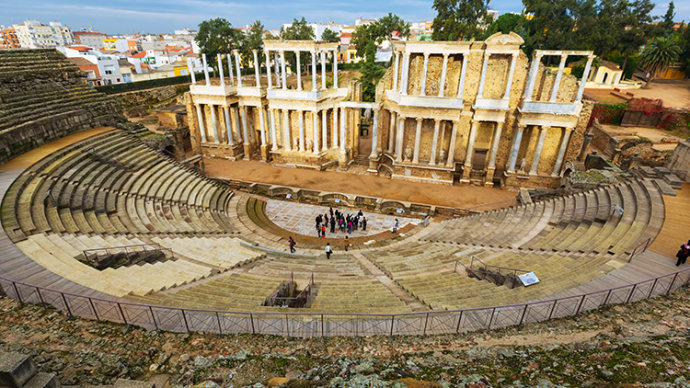 The town of Merida was founded as Emerita Augusta by veteran soldiers of the Emperor Augustus in 25 BC. The location allowed the Romans to guard a bridge over the Guadiana river. Emerita was also one end of the Via de la Plata (Silver Way) – a strategic Roman gold route between mines. The city became increasingly important throughout the Roman Empire, and the buildings established by the Romans were repurposed later by the Visigoths and the Almohad Muslims who conquered Emerita in 713 AD.