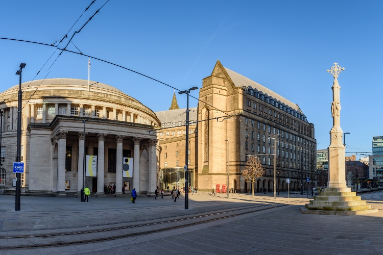 St Peter’s Square is a public space in central Manchester with a history at the heart of the British working class movement. The surrounding area was the site of the Peterloo Massacre of 1819, and today is home to a number of memorials and transport links around the city.
