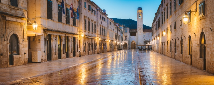 Stradun is Dubrovnik’s most famous thoroughfare, stretching just 300 metres between the East gate – Ploče (Vrata od Ploča) – and the west gate – Pile (Vrata od Pila).