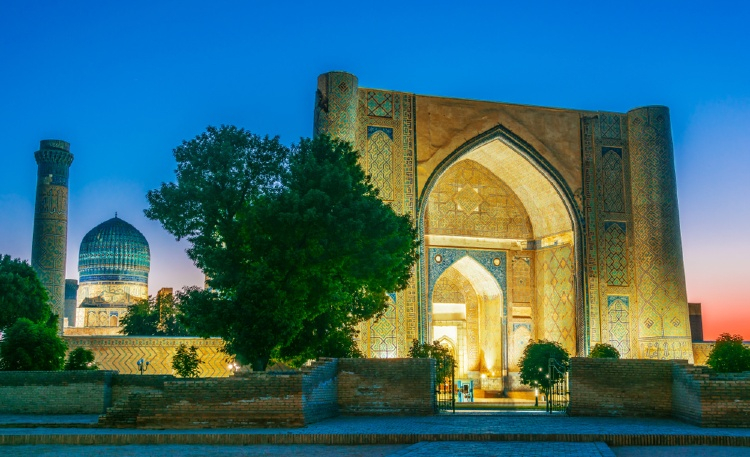Today, the beautiful mosque provides a portal into Muslim medieval architecture. The Bibi-Khanym Mosque follows the pattern of other courtyard mosques from the era and boasts a monumental dome rising 40 metres high.