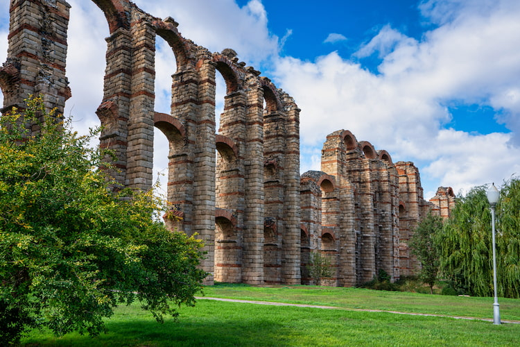 The Los Milagros Aqueduct is an incredibly well-preserved Roman water supply system in Merida, Spain.