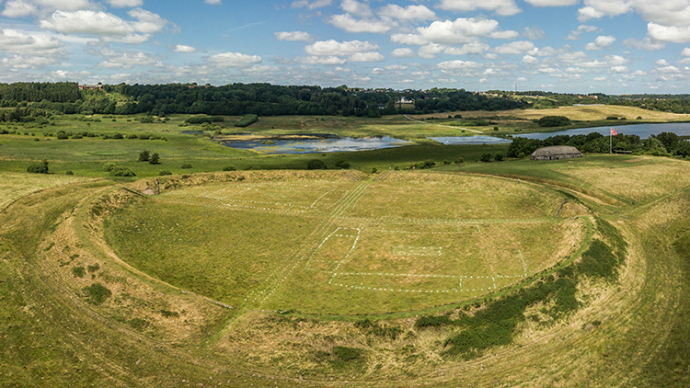 During the Viking period, Trelleborg would have been situated on a peninsula jutting out into swampland between rivers. The swamp was connected to the Great Belt by a lake, navigated by Viking ships. When Harald Bluetooth built the fortress in 980 AD, he likely knew that this strategic position would command the belt and its sea traffic between Zealand and Funen.