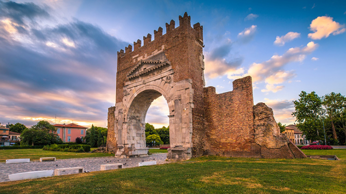 Crossing the Marecchia River, the extremely well-preserved Tiberius Bridge is still in use today.