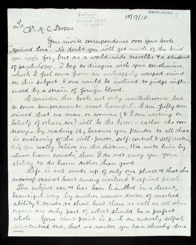 Stopes accused Dr. Halliday Sutherland of libel in 1923, after he attacked her in his 1922 book Birth Control: A Statement of Christian Doctrine Against the Neo Malthusians. He condemned Stopes’ birth control clinic, calling it ‘harmful’ and a ‘monstrous campaign’ – he also used her PhD from Munich against her in an attempt to capitalise on post-war anti-German sentiment.