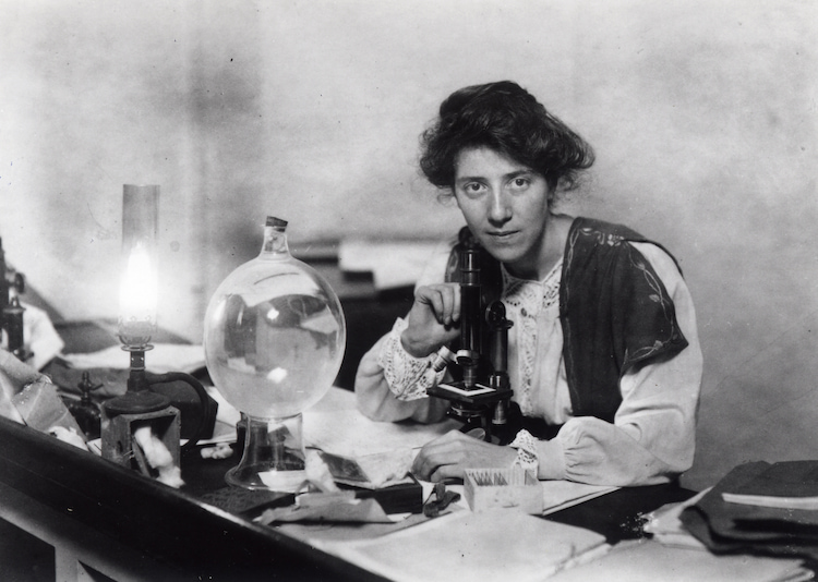 Marie Stopes in her laboratory at the Victoria University of Manchester, c.1904.