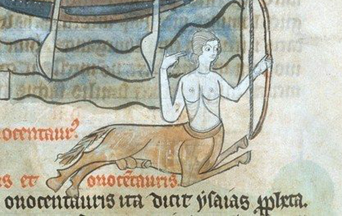 Present in Mediterranean folklore since the Bronze Age, Centaurs were a widely known part of medieval folklore throughout Europe. They continued to be associated with the wine god Dionysus even in Christianised Europe and were a feature of Romanesque architectural motifs.
