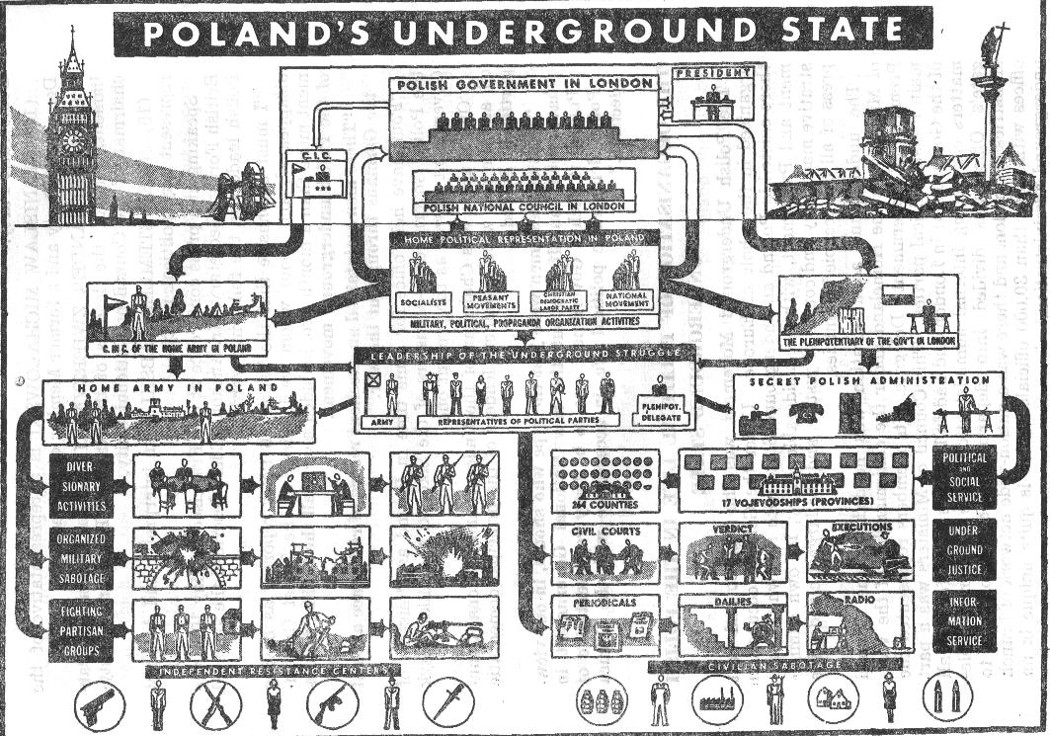 Established during the final stages of the German invasion (September 1939) the Underground State waged a subversive campaign against Nazi and then Soviet rule. Yet the state was not purely military in its structure; it also provided various civilian structures such as education and civil courts.