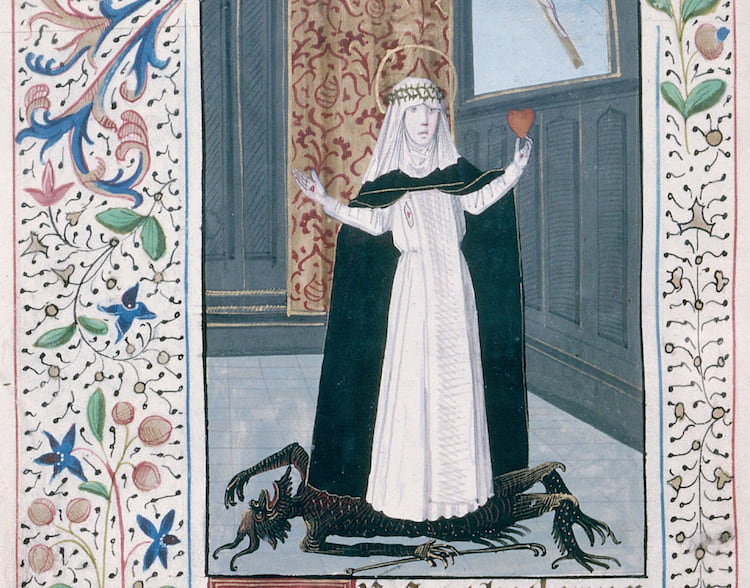Born into a large family in Siena (Catherine and her twin Giovanna were the 23rd and 24th children respectively), Catherine also experienced visions from a young age. Supposed to marry her sister’s widower, Catherine rebelled, instead declaring she wanted to take the veil. Whilst she did not follow through with this, she became a member of the ‘mantellate’, a group of pious women devoted to the Dominican order.