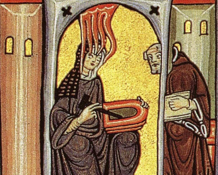 A medieval depiction of Hildegard of Bingen.