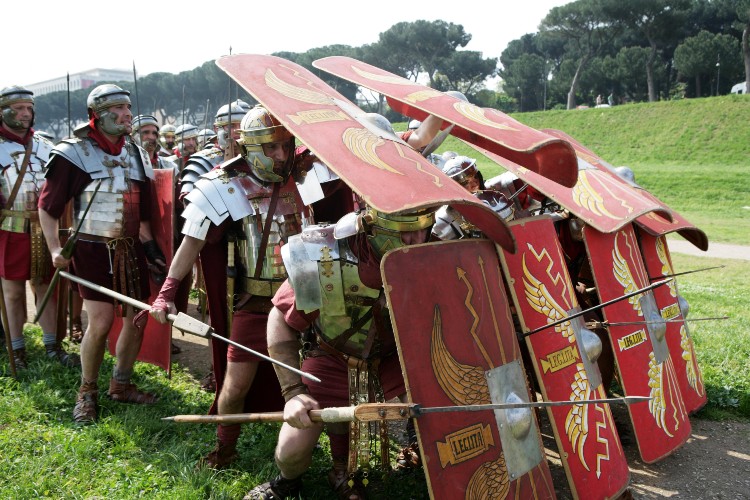 Roman legionnaires holding pilum.