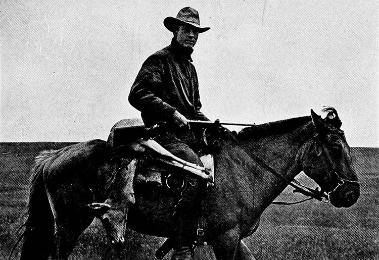 Roy Chapman Andrews on his horse Kublai Khan in Mongolia about 1920