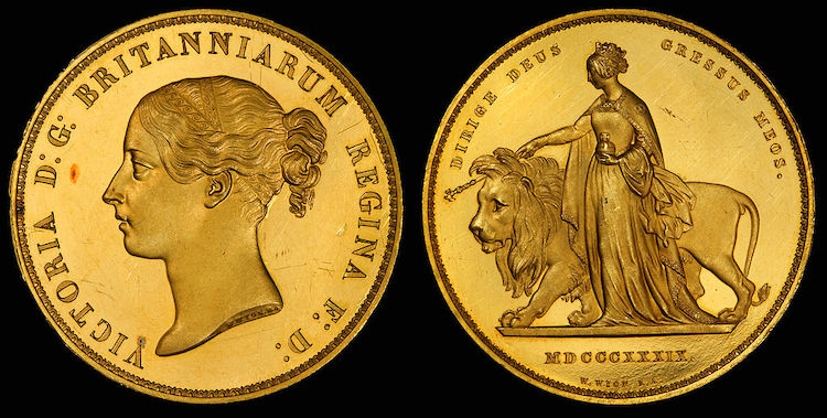 The ‘Una and the Lion’ British £5 coin, dating to 1839. It is a celebrated and highly valuable coin.