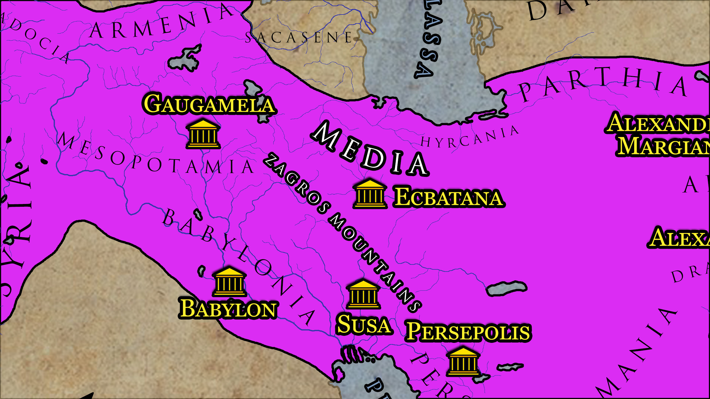 The province of Media, east of the Zagros Mountains in central Iran.