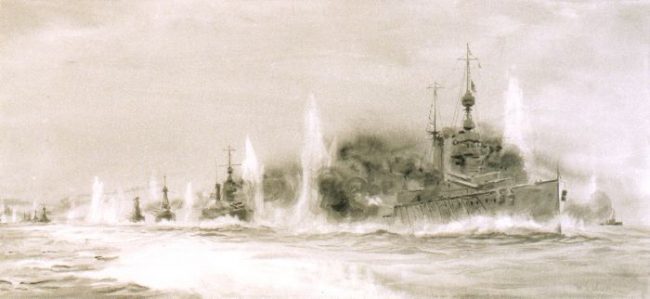With the exception of HMS Queen Mary, Beatty’s flagging ships had been severely damaged and their prospects were bleak. But relief was at hand with the arrival of the four mighty Battleships of the 5th Battle Squadron with their great 15-inch guns.