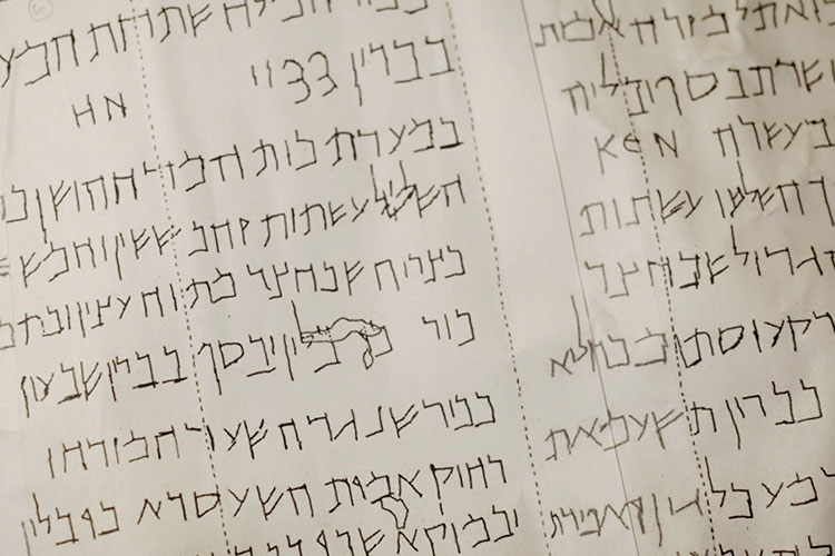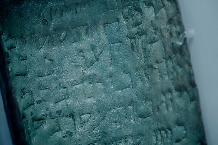 Replica of some of the Hebrew writing found in the Copper Scroll