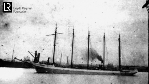 The Daddy-Long-Legs travelling through a high tide in c.1900.