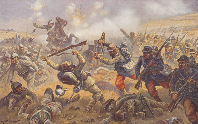 In their first engagements of the war the French suffered huge losses due to outdated approaches to war. At the Battle of the Frontiers they invaded Alsace and incurred catastrophic losses including 27,000 deaths in a single day, the highest death toll by one Western Front army of any day in the war.
