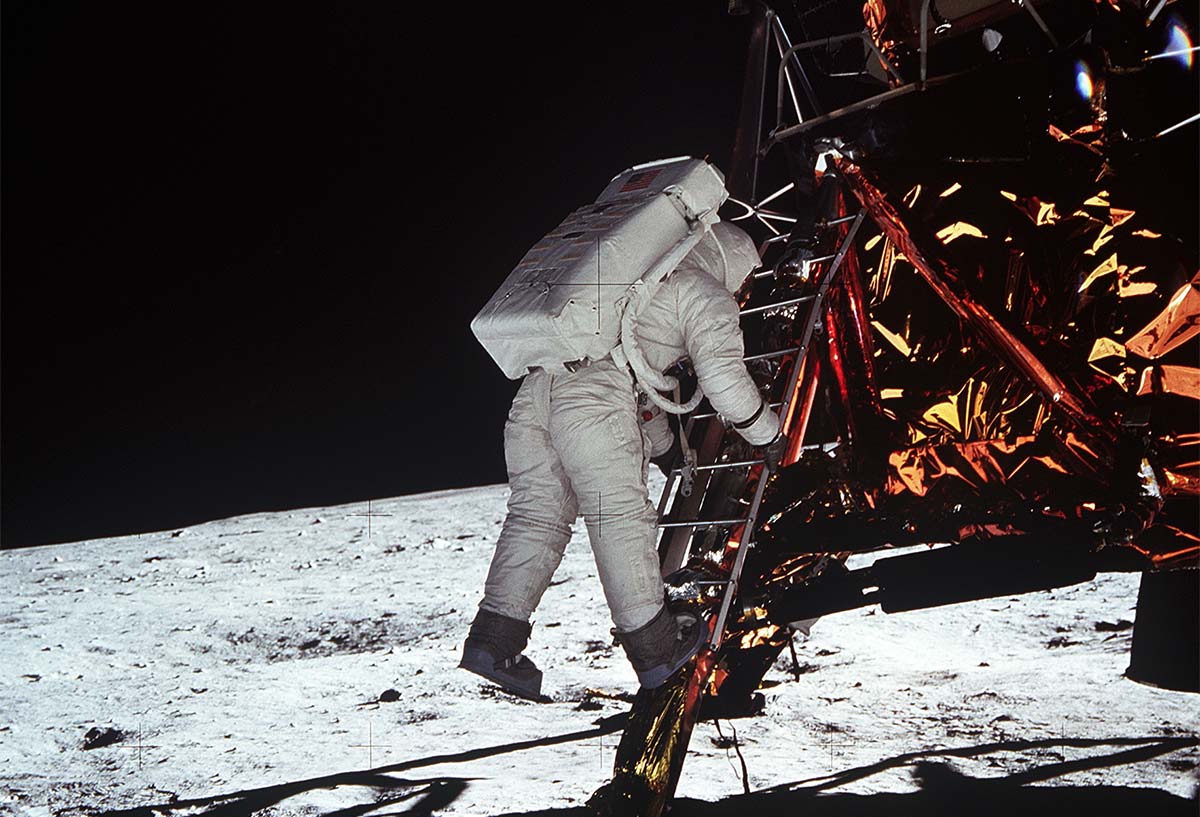 Soon after landing on the lunar surface, Neil Armstrong stepped down from the Lunar Module, announcing to the world: ‘That’s one small step for (a) man, one giant leap for mankind.’