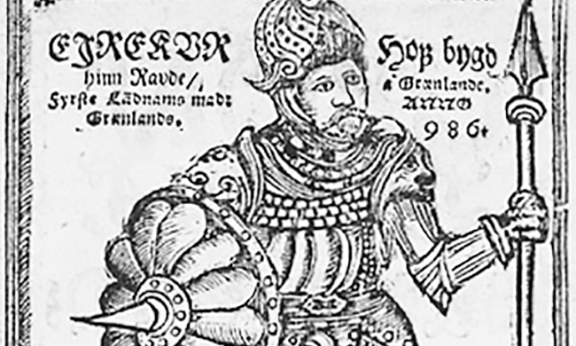 Eric the Red (Eiríkur rauði). Woodcut frontispiece from the 1688 Icelandic publication of Arngrímur Jónsson’s ‘Gronlandia (Greenland)’
