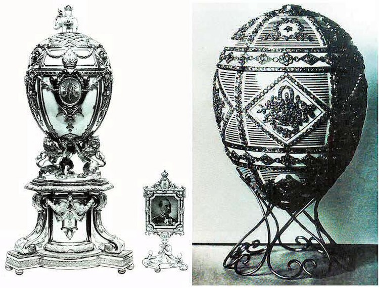 Left: A photo of the Royal Danish egg taken sometime before 1917.