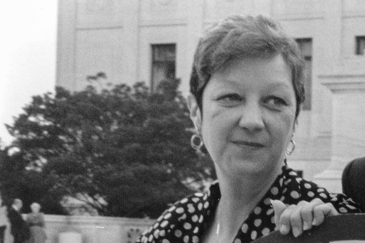 Norma McCorvey, left, who was Jane Roe in the 1973 Roe v. Wade case, with her attorney, Gloria Allred, outside the Supreme Court in April 1989, where the Court heard arguments in a case that could have overturned the Roe v. Wade decision.