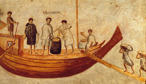 The chief amount of trade occurred between Rome and Spain, France, the Middle East and North Africa. Besides the large amounts of grain — the Empire’s principal commodity — that arrived from Africa to feed Rome and its armies, traded goods included iron, cattle, spices, wood, leather, marble, glass corn, precious and semi-precious metals and silk.