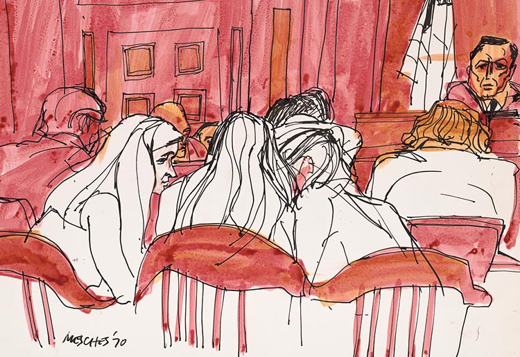 The defendants hit back by disrupting the court proceedings – making jokes, eating sweets, blowing kisses. Black Panther Chairman Bobby Seale was restrained and gagged by Judge Hoffman at one point, apparently for calling the judge a “pig” and a “racist”.
