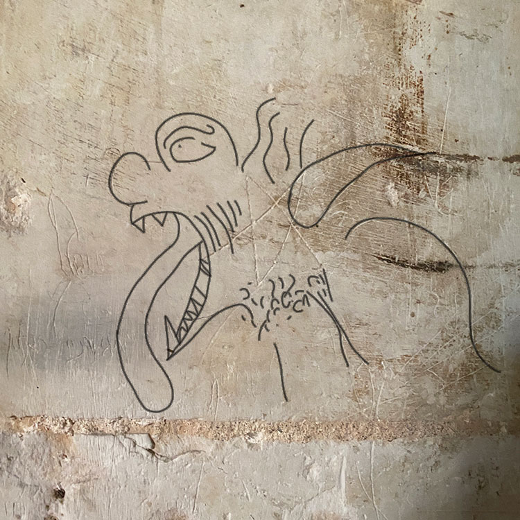 It’s like a medieval cartoon character. Given Saint Mary’s Troston was built in the 12th century, with wall art dating from the 1350s, it seems likely the demon graffiti was engraved around this time.