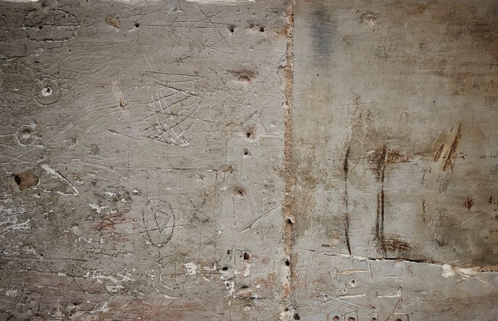 Seen it yet? Amongst hundreds of other little scratches there’s a more deeply inscribed pentangle. It appears this was scored by many parishioners to keep the demon ‘pinned down’. The pentangle is now thought of as a ‘Satanic Star’, but had positive connotations in the medieval period. Historian Matthew Champion explains below: