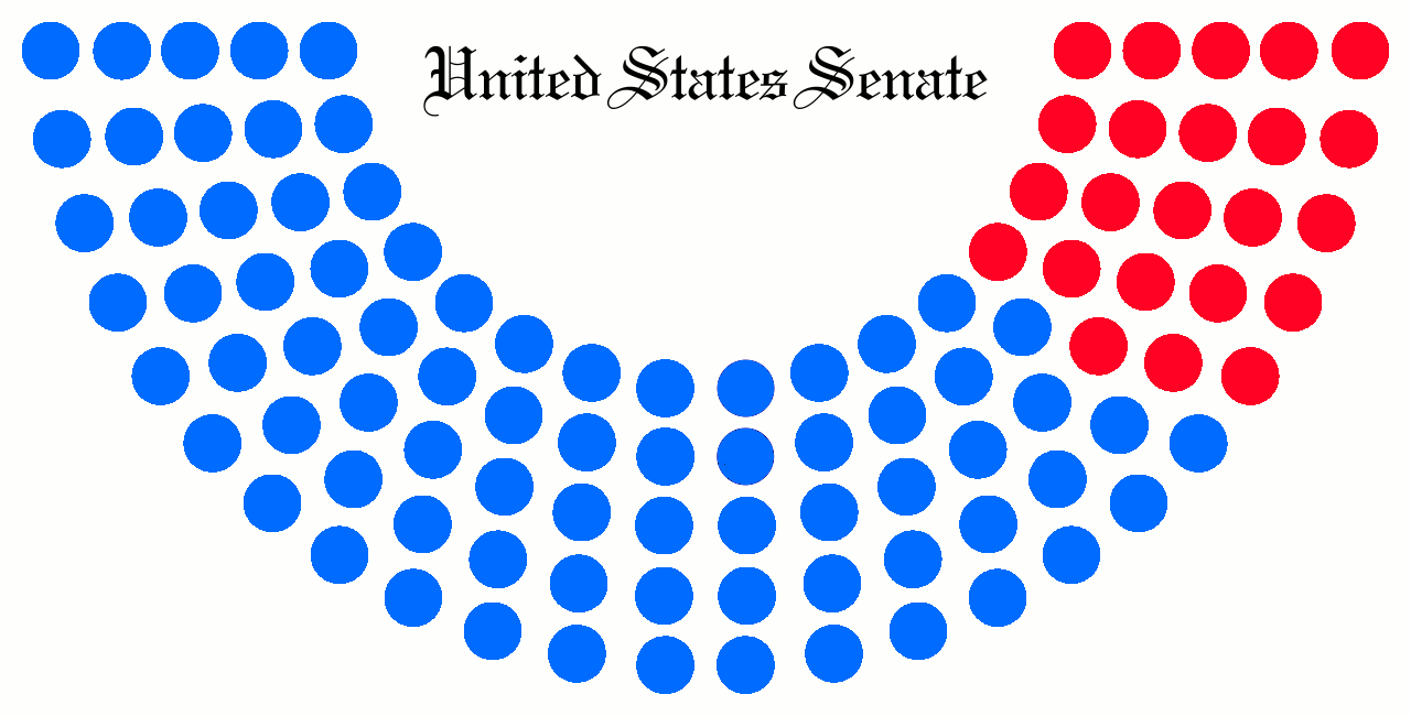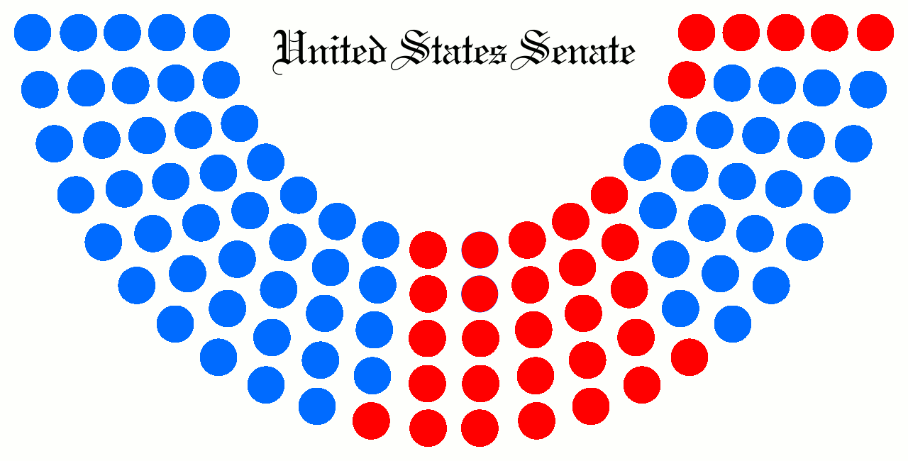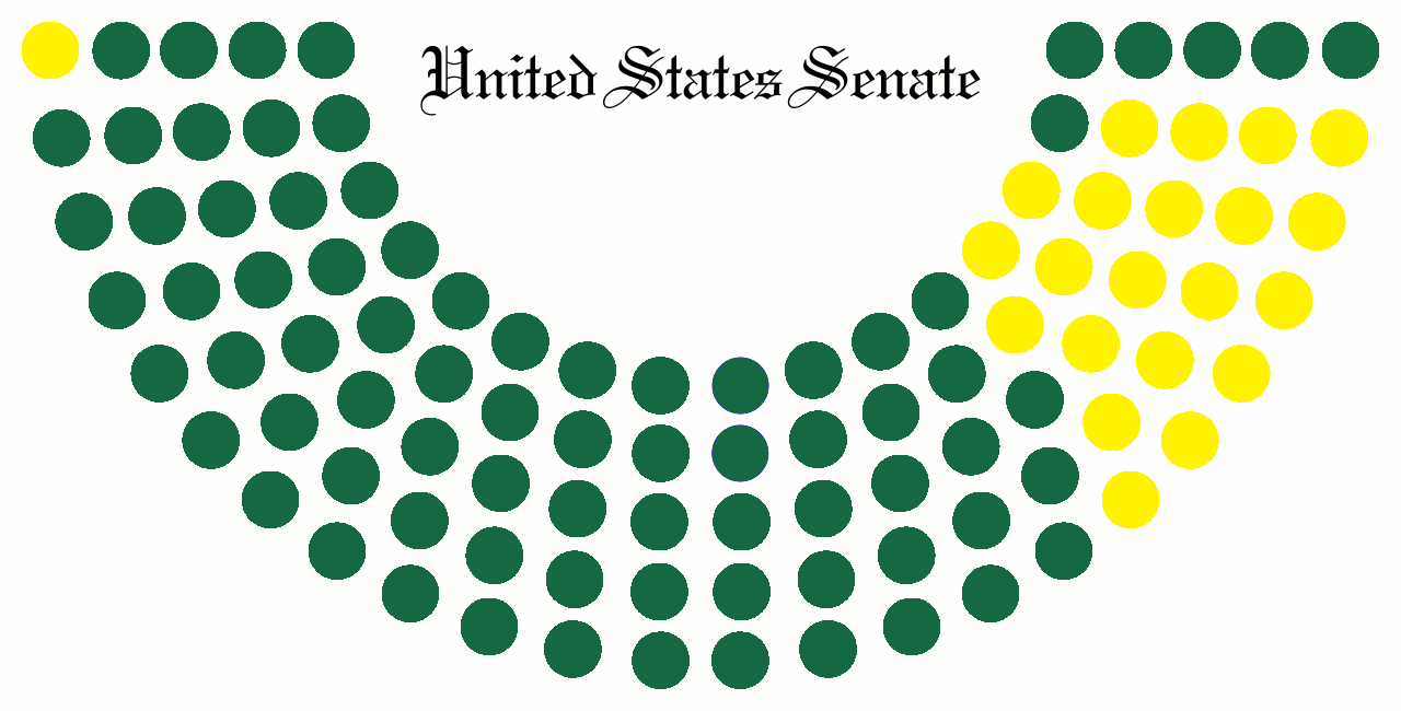 The Senate was divided along two main parameters; North-South (78-22) and Democrat-Republican (77-33);