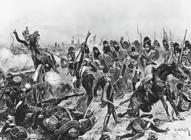 Quickly, the experienced British infantry closed in on their French counterparts and began a ferocious musketry duel. Aware of the threat of cavalry, the local French commander Maucune formed his infantry into squares – but this only meant that his men were easy targets for the British guns.